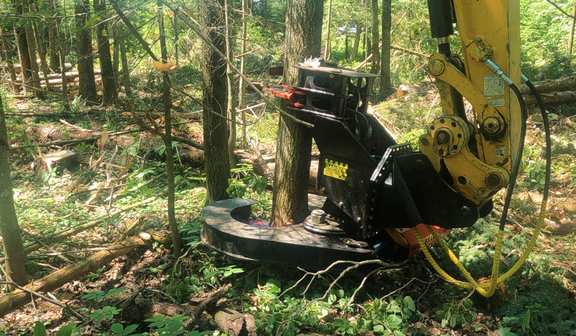 Heavy-duty tree shear designed for compact excavators